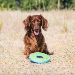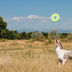 The toy soars through the air for a fast flight. It’s unsinkable and floats high in the water, making it the perfect summertime flyer. Its soft, rugged construction is easy to clean, making it a great toy for both the backyard and the water.