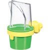 The JW® Clean Seed Silo Bird Feeder dramatically reduces seed spill outside the cage, while providing a clean supply of food to your bird. A convenient guard helps prevent seeds and shells from spilling out and helps to reduce spillage when you refill the outer chamber. This gravity feeder helps stop hulls from building up as new seeds fall and push empty seed husks out of the tray. No more buildup of empty seed husks on top of uneaten seeds. Stops seed contamination from bird droppings. Can be filled from the outside of the cage and will fit securely on all bird cages, including both vertical and horizontal bars with a clever screw-on design. An ideal gravity feeder for parakeets, canaries, finches, and similarly sized birds. Ships in assorted colors: blue, yellow, and green.